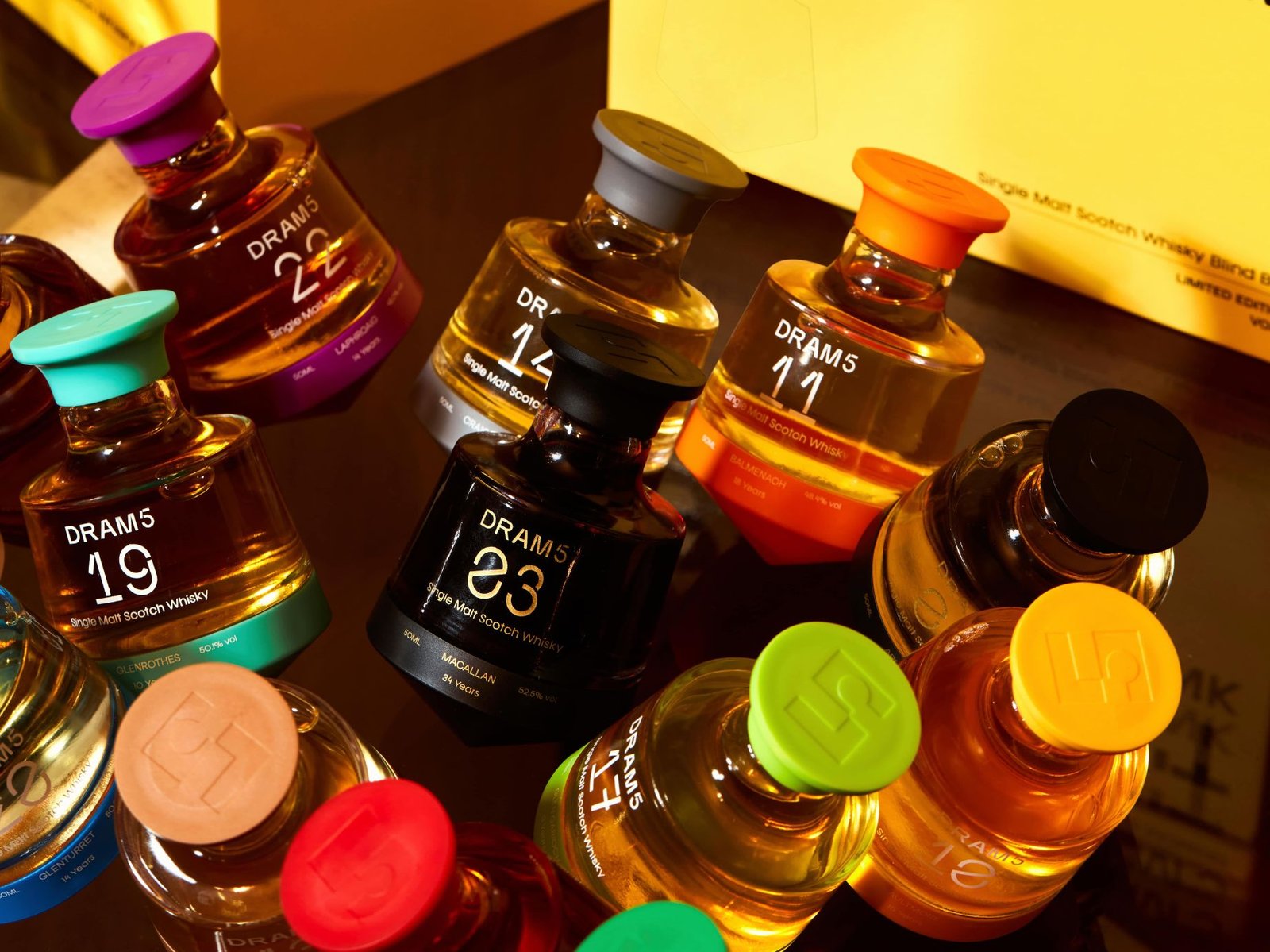 Sourced from both celebrated and boutique distilleries across Scotland, the whiskies in each DRAM5 box are drawn from individually selected casks, each chosen for its character, provenance, and uniqueness. The first release is strictly limited to 6,000 boxes, every single cask whisky featured in the collection is exclusive to DRAM5 and cannot be purchased elsewhere.