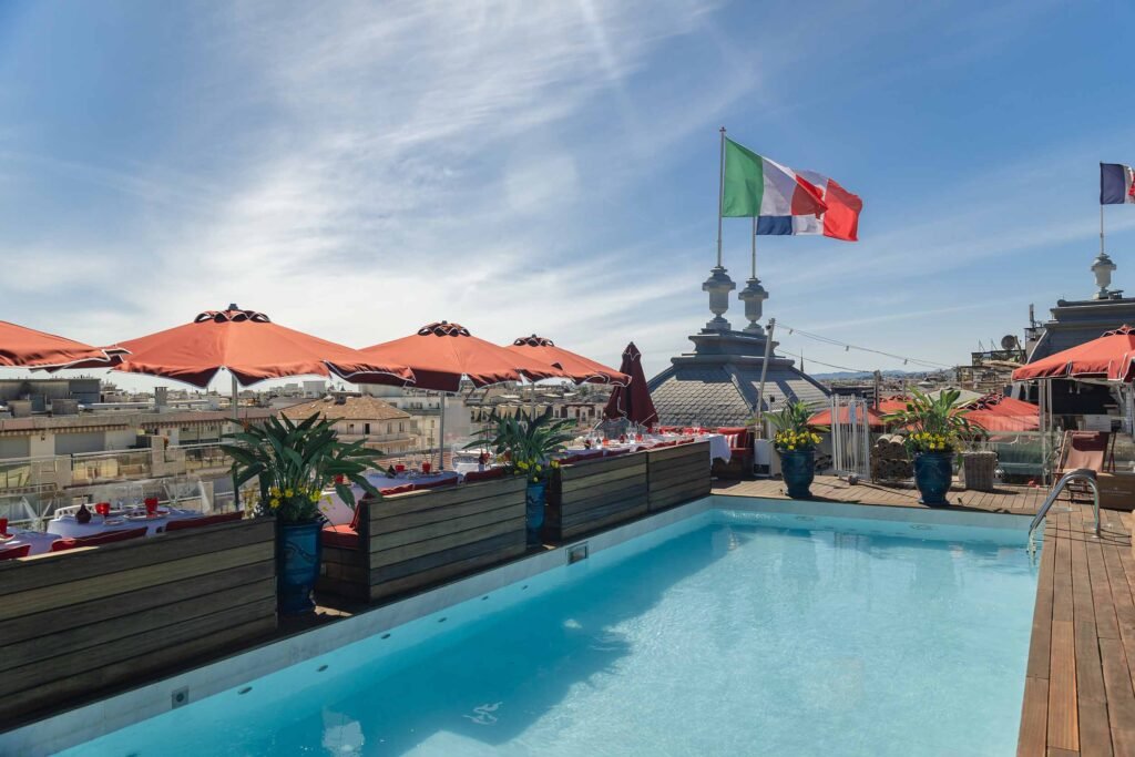 Until the end of September, head to the 6th and top floor of the Boscolo Hôtel & Spa Nice to discover the Boscolo rooftop. A true chic and glamorous hotspot of Nice’s nightlife, it offers a stunning 360° panoramic view over the rooftops of the city and the surrounding hills of the Nice hinterland.