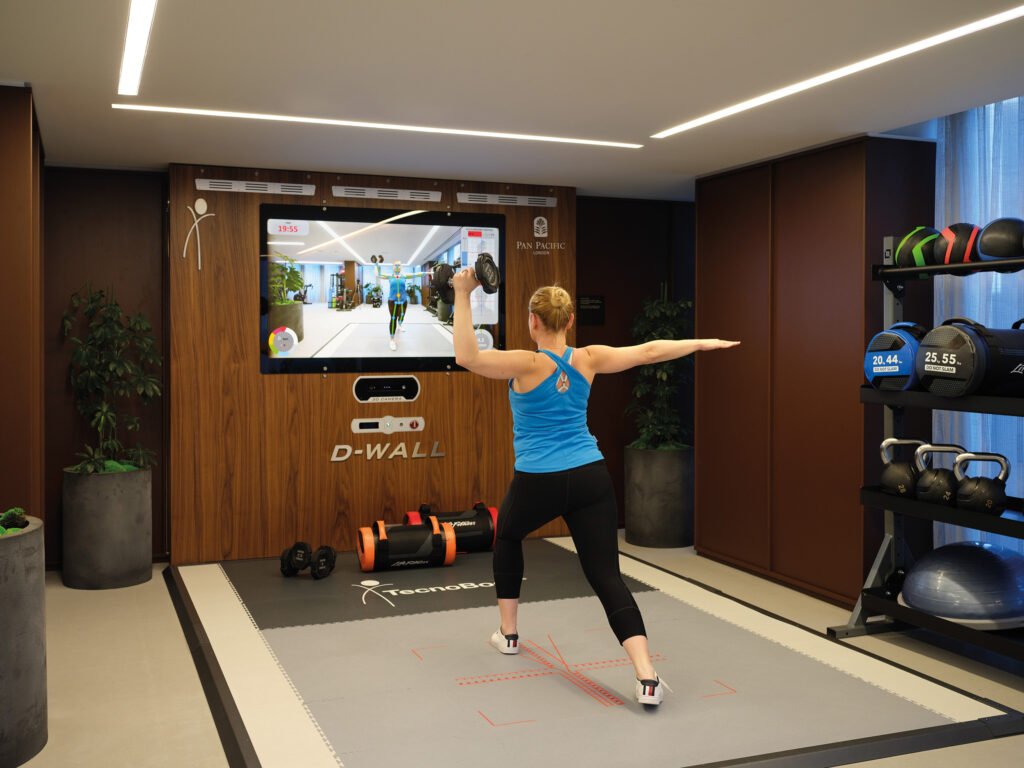 Mornings begin with a workout in the state-of-the-art gym, where a team of health and spa professionals can help you reach your fitness goals. Warm up on the treadmill and then take a spin on the Peloton bike. The Pan Pacific London is the only hotel in the UK to have a Technobody D Wall – a firm favourite with top athletes. This cutting-edge technology (left) uses 3D cameras and sensors to provide a detailed assessment of your physical alignment, strength, and flexibility. The wall also plays a key part in the hotel’s incredible Body MOT service, a service programme primarily designed for elite athletes.