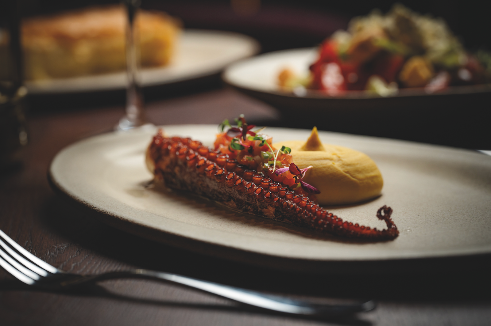 HERA brings an authentic and contemporary Greek dining experience to the heart of Stratford. The family- owned restaurant led by Hellenic Head Chef, Marios Selimis (previously of Dinner by Heston Blumenthal) takes diners on an imaginative journey of flavour. Vegetables, meat, and seafood all contribute towards an enticing selection of Greek classics, within a luxurious and vibrant setting where a palette of warm aubergine, marble, copper, and gold creates an elegant backdrop. Guests can choose to sit inside or outside on the sunny plant-filled terrace.