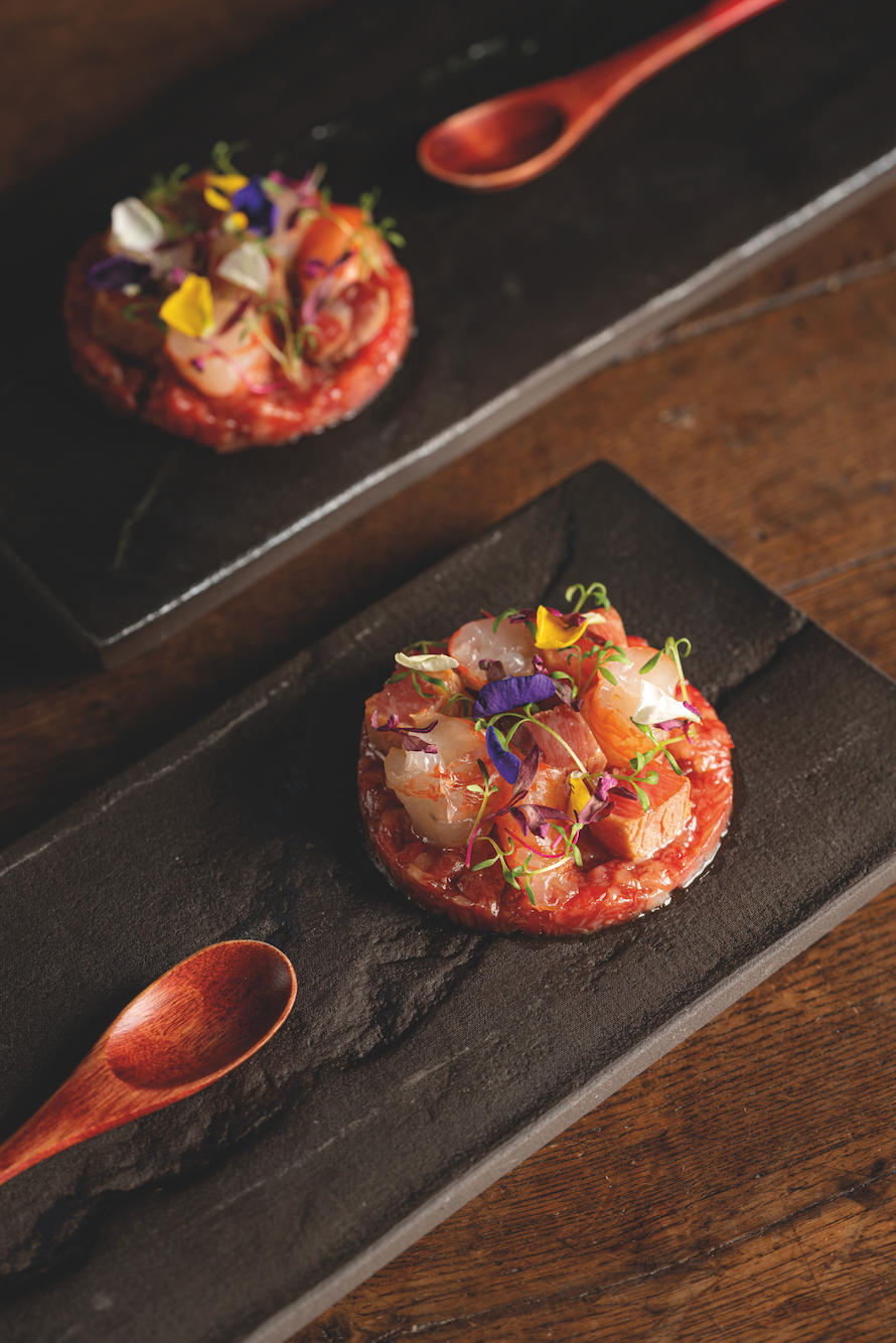 At the core of Vatavaran is a celebration of Sigri cooking, using open-flame techniques that elevate seasonal ingredients and spotlight India’s diverse regional flavours. Every dish channels earth, fire, and spice, from lamb chops with Kashmiri chilli and black cumin, to the decadent Lobster Moilee. There are also vibrant vegetarian plates, including beetroot chops with cloves and vanilla; and morels and broccoli in korma truffle. The presentation and flavours are exquisite, creating an immersive and unique food journey.