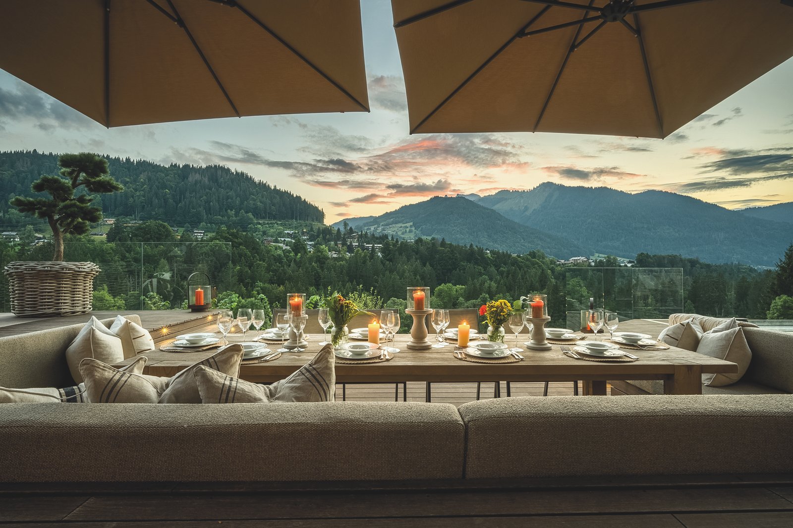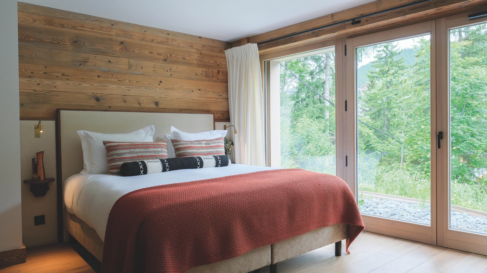 Meaning ‘Mountain of Angels’, Chalet Mont des Anges (bottom right) is a strikingly refurbished luxury chalet that perfectly balances contemporary design with alpine charm. Sleeping up to 14 guests, it features six beautifully styled bedrooms, a cinema room, and a stunning open-plan living area with panoramic mountain views. The terrace is the true highlight, complete with an infinity pool, hot tub, sauna and outdoor kitchen.