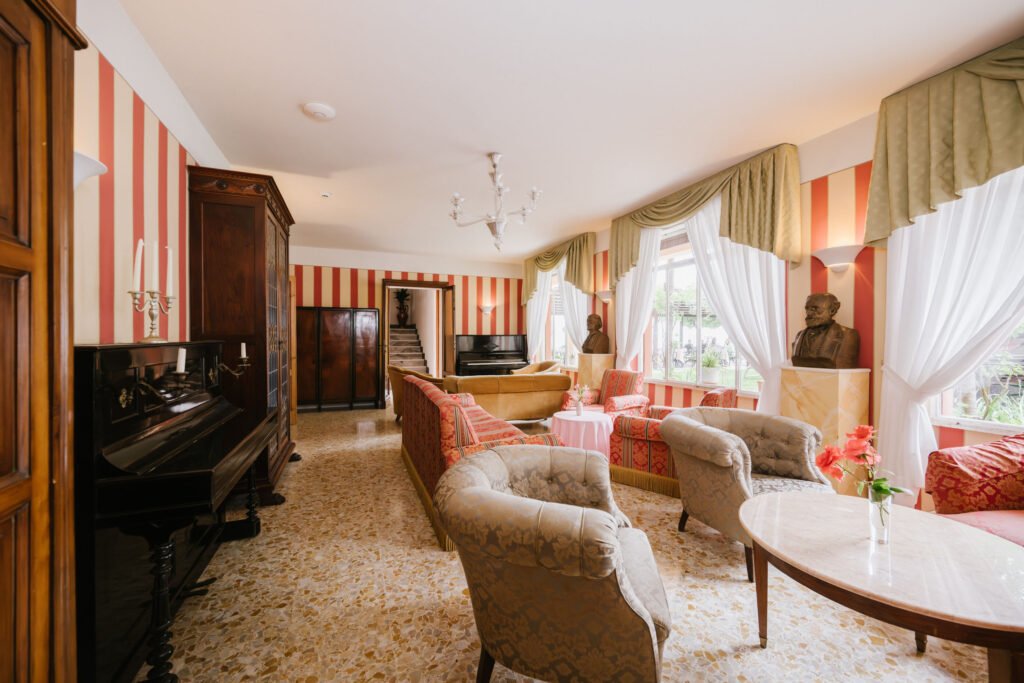 Hotel Gardenia al Lago is the grand drawing room of the family estate. Centred around a music room featuring the family own pianos, it is a place of silver service, heavy linen, and the matriarch Tina’s carefully tended bougainvillaea. It is authentic and deeply romantic.