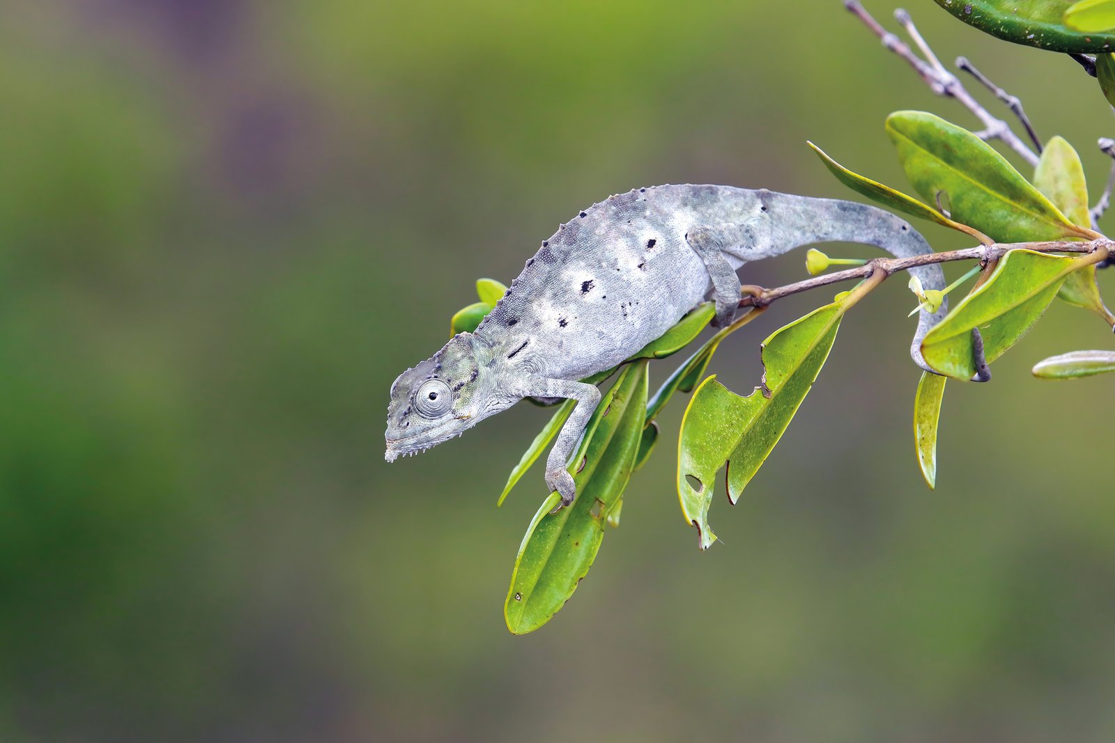 Tiger chameleon & Seychelles paradise flycatcher © TOURISM SEYCHELLES