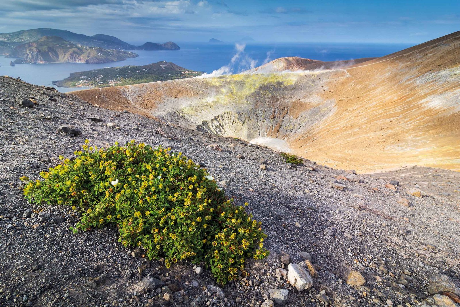 Vulcano is still semi-active and has three volcanic peaks, with Monte Aria its highest point at 500 metres. Dominating the northern part of the island is the star of the show – Gran Cratere (below right). For a small entrance fee, you can enjoy a hike up to the crater edge, which is not overly strenuous, but still requires good walking shoes, sunblock and plenty of water. On arrival, the summit is spectacular as you stare down into the prehistoric, sulphurous crater, its fumaroles spewing and grumbling from the bowels of the Earth. It’s totally mesmerising, yet, if you can tear your gaze away, the horizon offers equally stunning views of the Aeolian archipelago.
