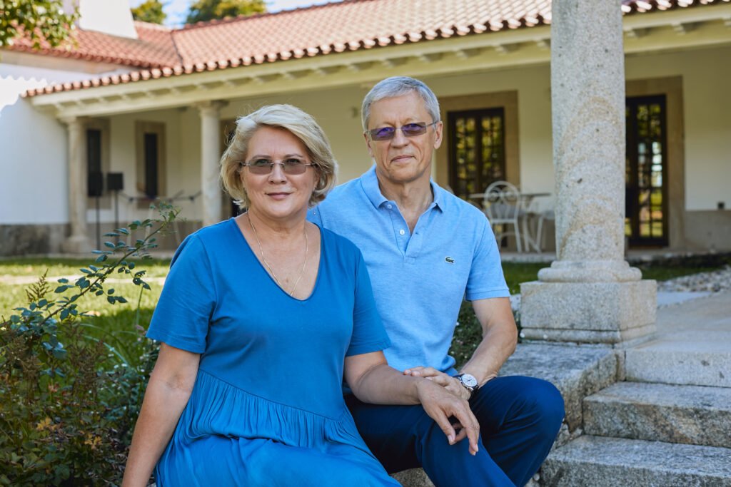 Set across 13 hectares of countryside, Vinte Quinta da Boavista centres on a 15th century manor house surrounded by vineyards, olive groves, orchards, and gardens. Owners Ella and Sergey (below middle) lovingly restored the estate and reopened it in 2020 with a clear vision, to create a tranquil retreat that blends historic character with modern comfort. Alongside the manor house sit six stylish cottages and apartments in varying sizes, making the property suitable for couples, families, and small groups.