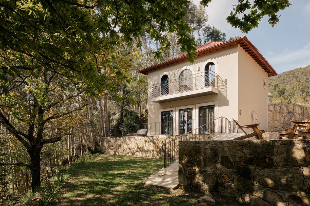 The estate is located in the lush Minho region, around a 50-minute drive north of Porto Airport. While peaceful and rural, it is well placed for exploring. Ponte de Lima, widely considered Portugal’s oldest town, is just minutes away. Its medieval bridge, cobbled streets, and riverside cafés make it a charming place to wander.