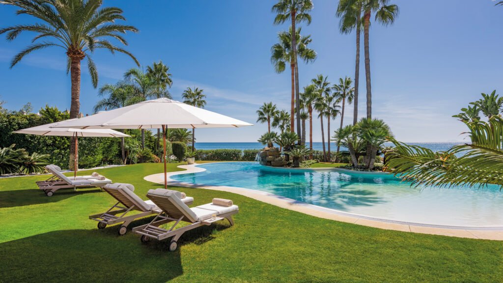 Marbella has recently taken on a starring role as a filming location for Amazon Prime’s The Girlfriend, and Villa Mari (above left) fits effortlessly into the scene. This modern beachfront Andalusian retreat features expansive terraces, a statement pool and interiors that blend contemporary luxury with warm Mediterranean character. With private chefs and curated experiences available, it offers a refined yet relaxed take on coastal living – ideal for those seeking effortless luxury in a vibrant setting.