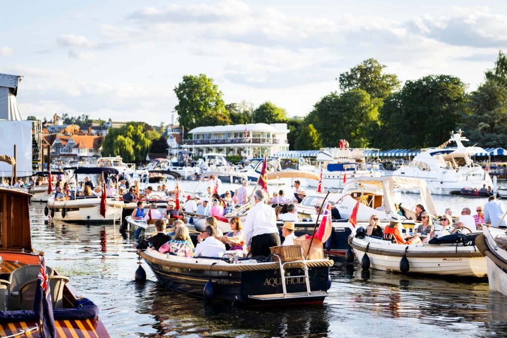 Henley is synonymous with black-tie glamour: as dusk falls, the riverside transforms into a dazzling tableau of tuxedos, silk gowns and champagne flutes catching the evening light. Guests arrive for an experience that blends cultural indulgence with social prestige.